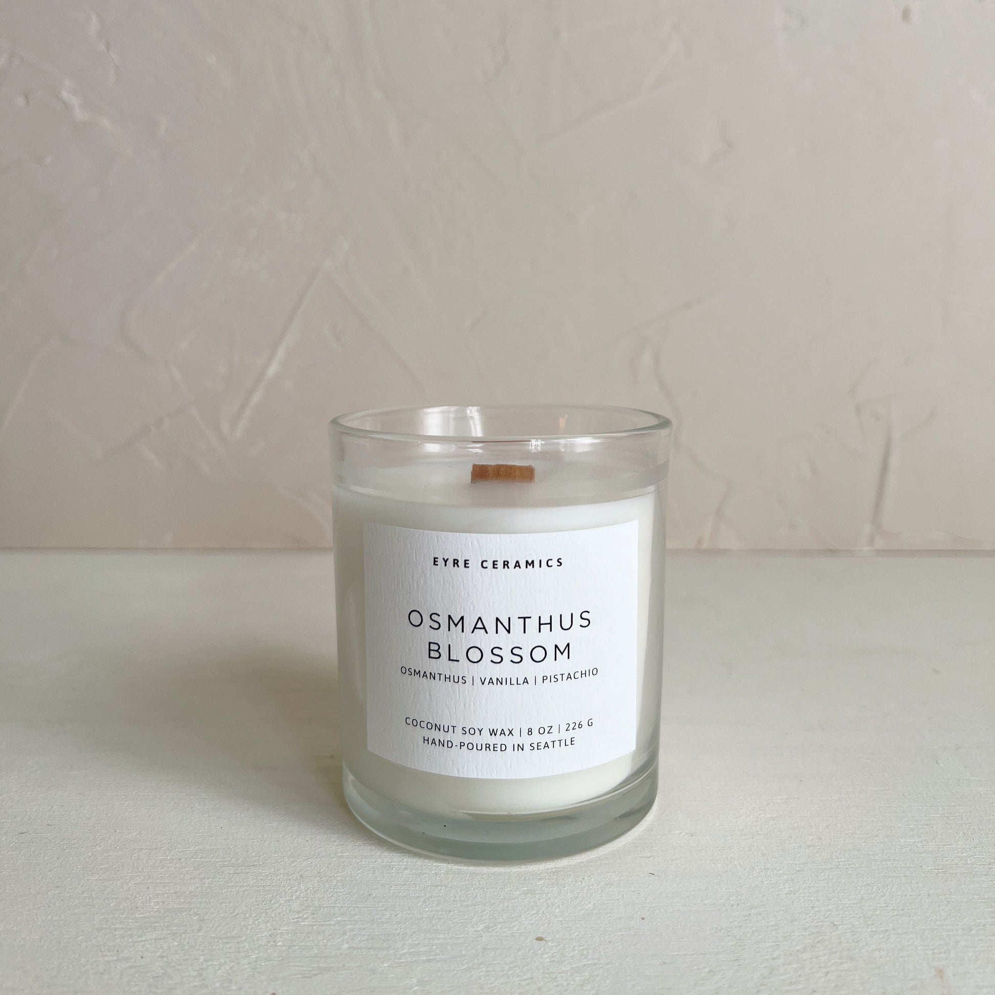 Each candle is hand-poured into an 8 oz glass jar using vegan coconut soy wax and phthalate-free premium fragrance and essential oils, plus an FSC-certified wood wick. Each candle sold separately.